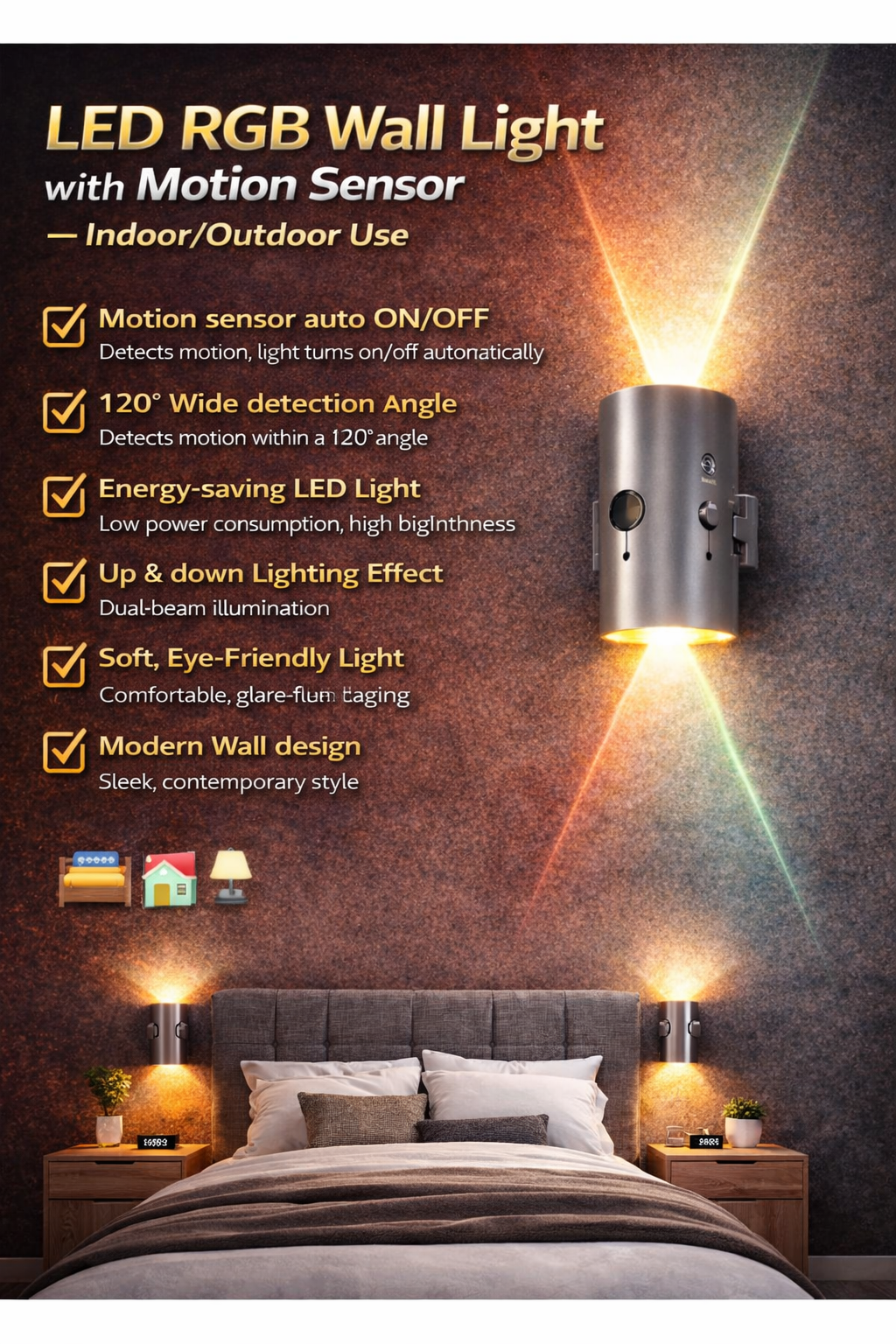 LED RGB Wall Light with Motion Sensor – Indoor/Outdoor Use